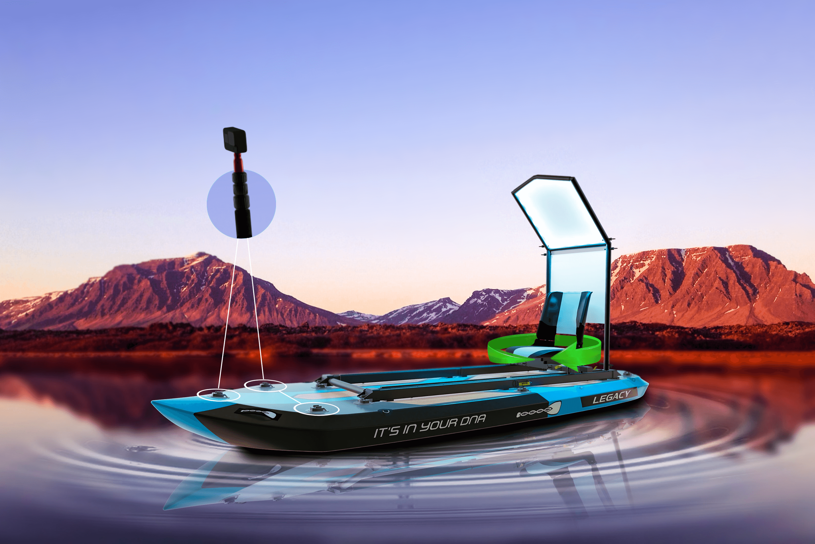Our completely 360° swivel seat sits securely on our patent pending rail system. Which gives you complete maneuverability on the board. Take a seat, cast a line, launch your drone... Or simple just chill out while reading a book. Our boards are built with functional luxury in mind.